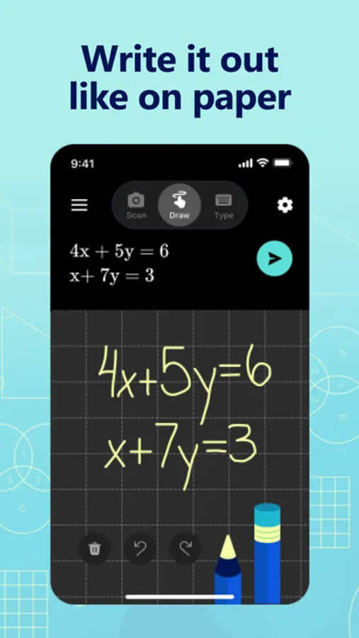 Use your camera to scan the problem, write it out on our whiteboard, or enter it in our calculator. Whatever you choose, Math Solver will help you solve it instantly with a detailed step-by-step explanation, interactive graphs, or similar problems from the web. And when you’re ready for more practice, there’s also daily quizzes, video lectures, and articles to explore.