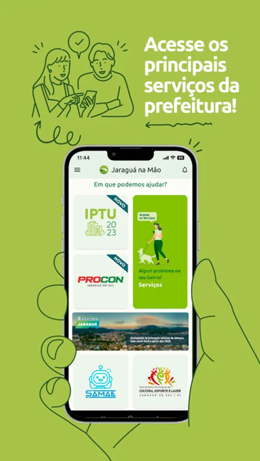 O Aplicativo Jaraguá na Mão é um acesso direto aos serviços públicos municipais por parte do cidadão. Com essa ferramenta, o usuário tem acesso a um vasto menu de serviços que facilitam o dia dia de quem mora na cidade ou está em visita a Jaraguá do Sul.