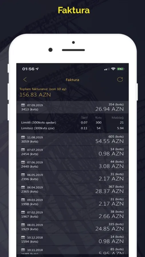 B) Faktura menyusuna basaraq aylıq enerji sərfiyyatı kvt və manat olaraq göre bilərsiniz. Bu sizin bir ay ərzində istifadə etdiyiniz elektrik enerjisi sərfiyyatıdır.