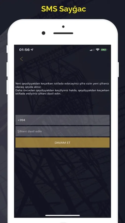 1. Giriş ekranında 15 rəqəmli abonə kodu daxil edilərək davam et düyməsinə basılır.