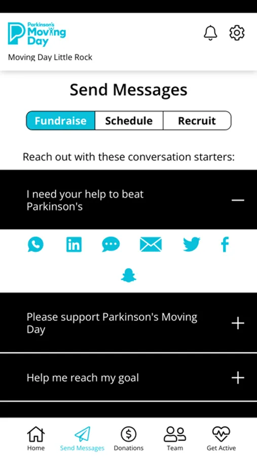 Do your fundraising on the go with your Parkinson's Moving Day application. Update your page, send emails, check your progress, and connect to Apple HealthKit to track your physical activity – all from the palm of your hand. The Parkinson's Moving Day application is a great tool to track your fundraising progress, and to keep current on all Parkinson's Moving Day news!