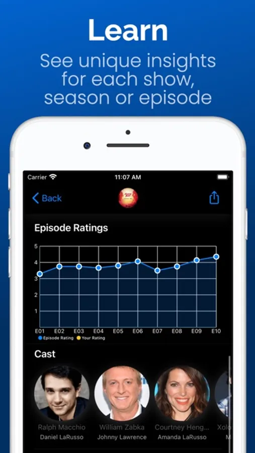 Keep track of what you watch by marking episodes and movies as watched, then rate them.