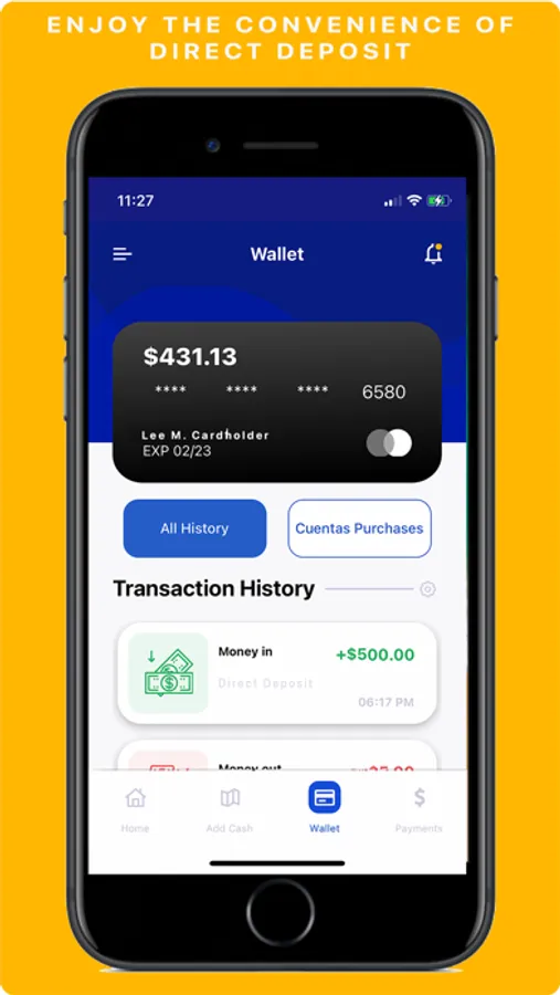 The Cuentas Prepaid Mastercard® is a mobile app that lets you manage your money on the go. With features like no credit check and no fee direct deposit, you can check your balance at any time to stay in control of your money. Transfer money to another Cuentas cardholder for free, receive your direct deposit up to 2 days earlier, conveniently make online purchases, pay for groceries, and pay your bills. The Cuentas Prepaid Mastercard® funds are FDIC insured and can be used wherever debit Mastercard® is accepted.