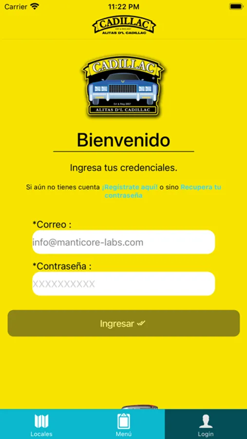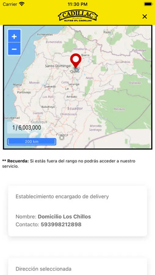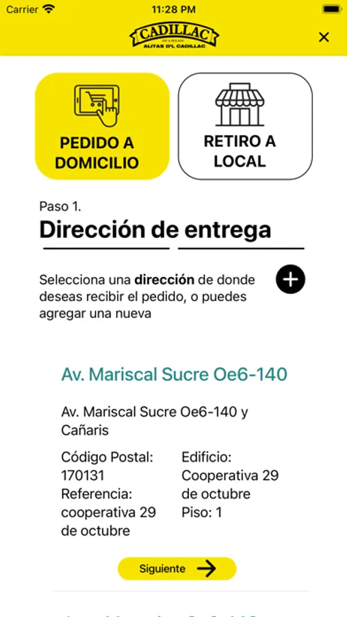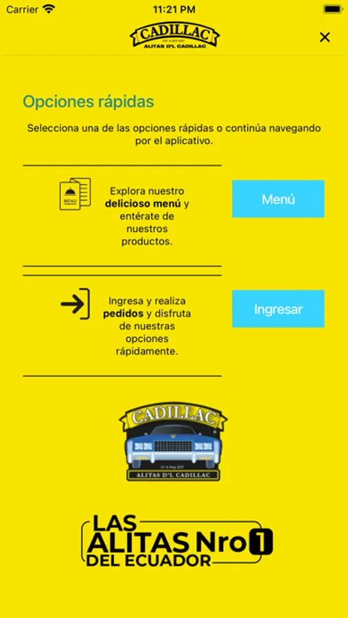 Aplicación para pedidos a domicilio de Alitas del Cadillac