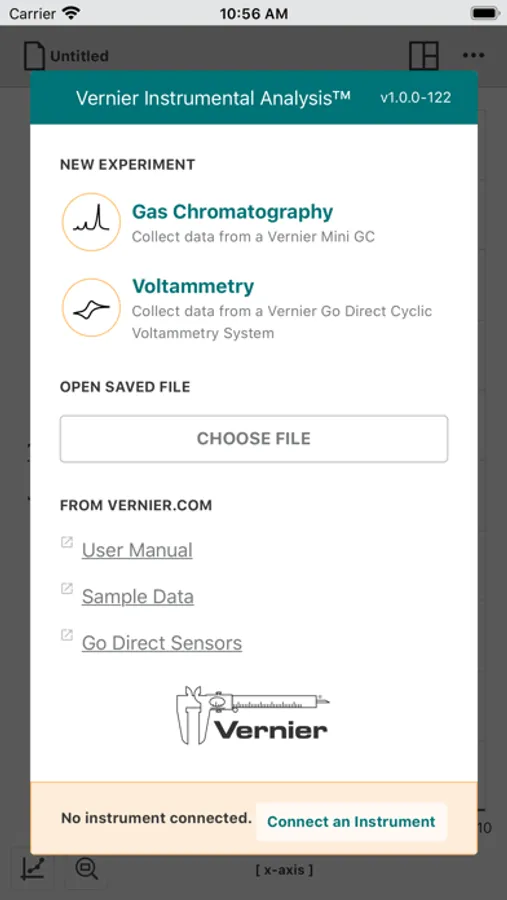 Our free Vernier Instrumental Analysis™ app makes it easy to incorporate instrumentation into your chemistry curriculum. The user-friendly interface walks students through the data-collection process and includes instrument-specific analysis features.