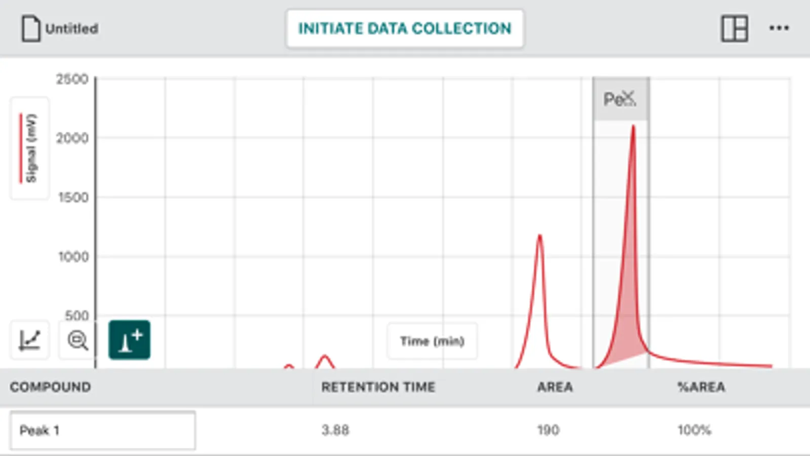 Students can collect a gas chromatogram from the Vernier Mini GC, Mini GC Plus, and Go Direct Mini GC. They can also determine peak area and integrate peaks.