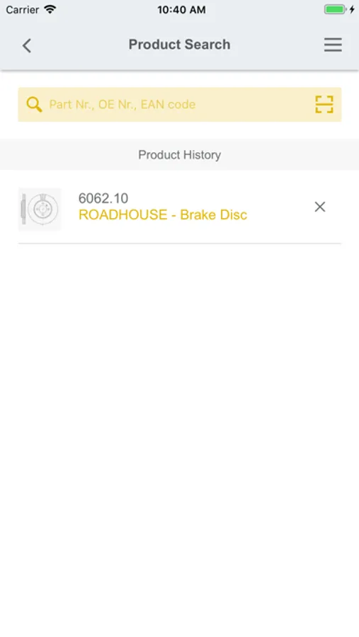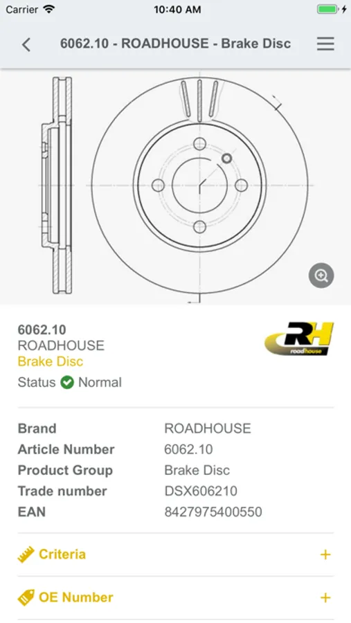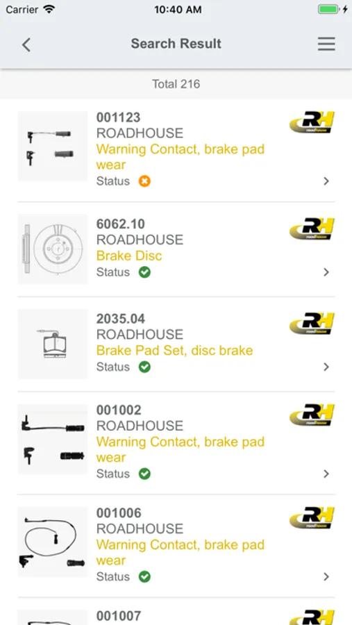 - Product Search: Find the part number by directly entering any Road House reference, origin reference, competitors reference, international number (WVA), FMSI…In this option you can also scan the Road House product barcode with your device.