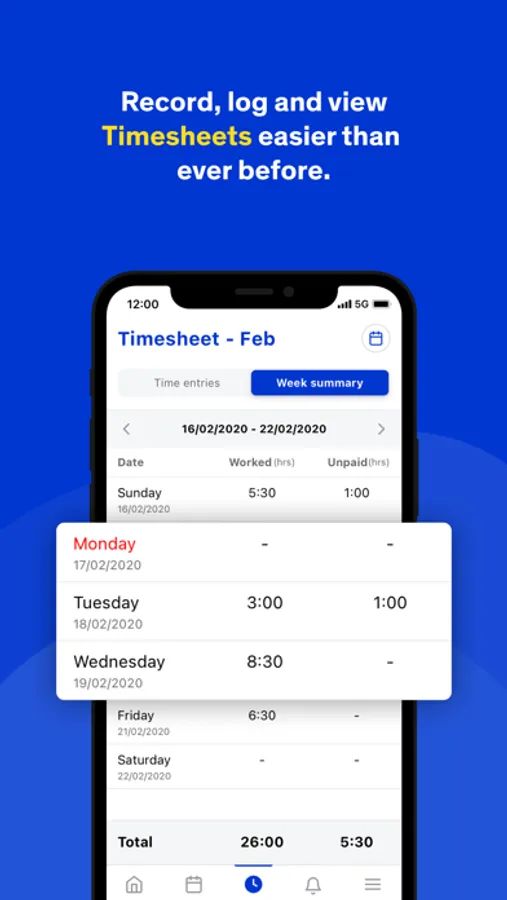 - Record, log and view timesheets
