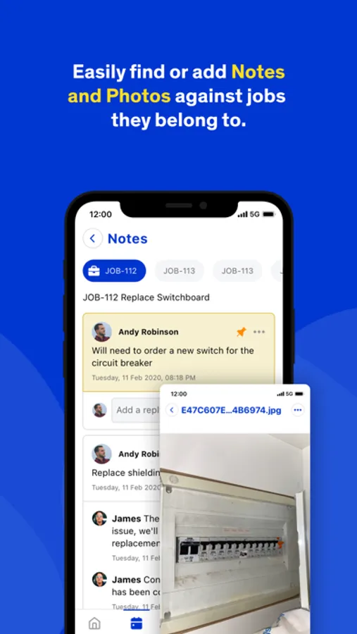 - Easily find or add notes and photos against jobs they belong to