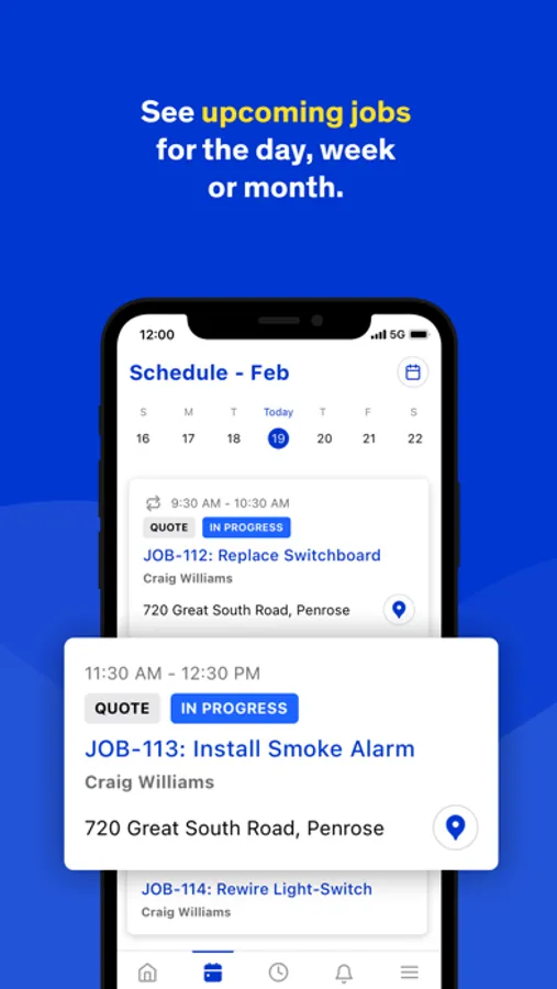 - See upcoming jobs for the day, week or month