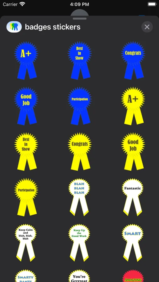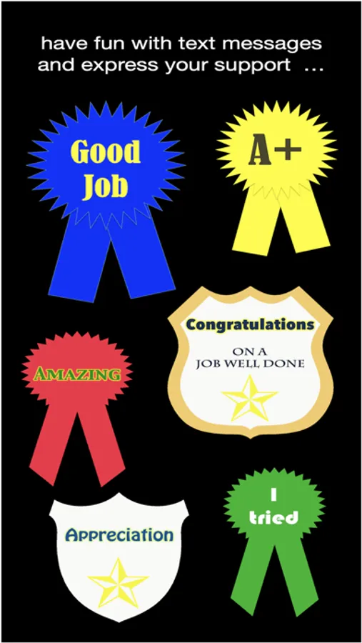 Have fun with text messages by expressing your support and encouragement with badges and awards stickers.