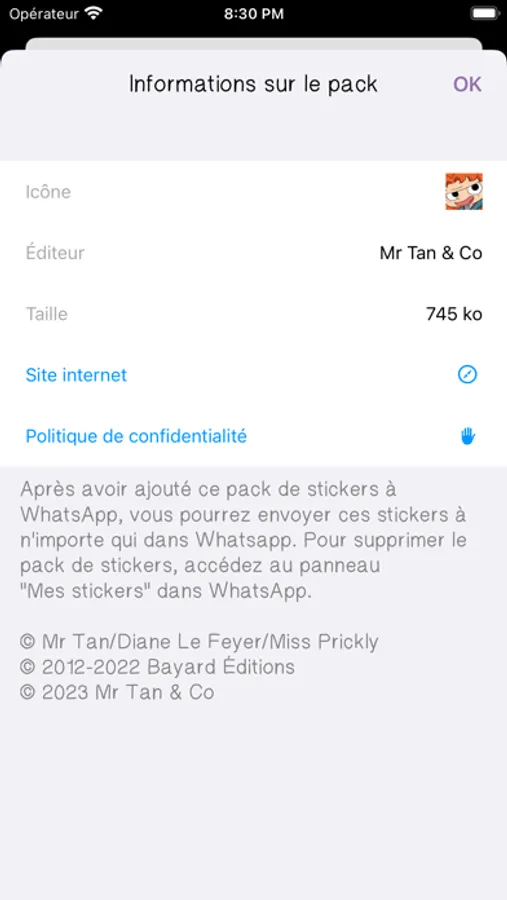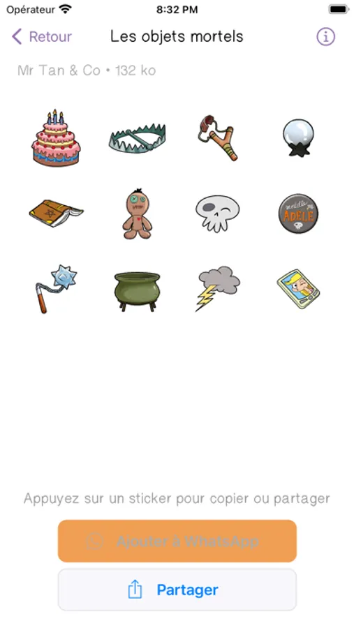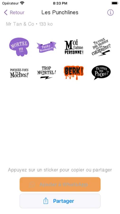 Les packs sont également enregistrables pour une utilisation sur WhatsApp.