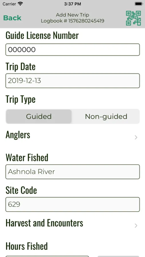 WDFW Guide Logbook Screenshots