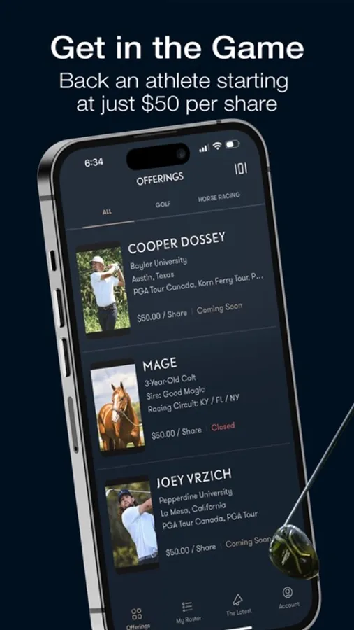 We made it easy to select the next top golfer or racehorse. Browse complete information on each offering: