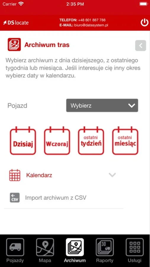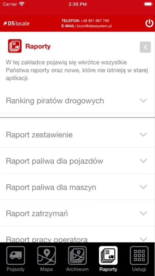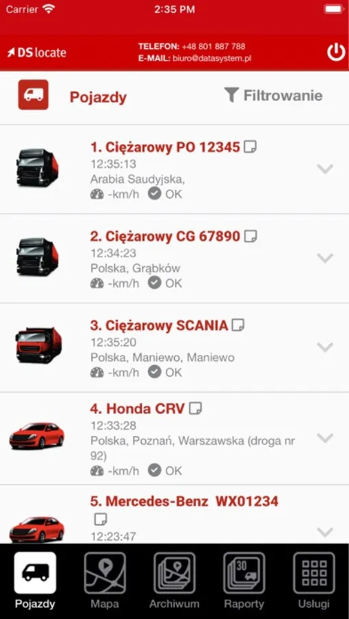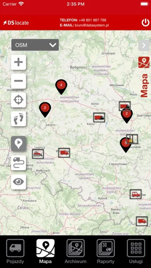 DS Locate to aplikacja, która pozwala monitorować swoje pojazdy w czasie rzeczywistym. Dzięki niej w każdej chwili będziesz mógł sprawdzić, gdzie znajdują się twoje pojazdy, jaką mają prędkość, stan paliwa lub innych parametrów. DS Locate umożliwia również przegląd danych archiwalnych.