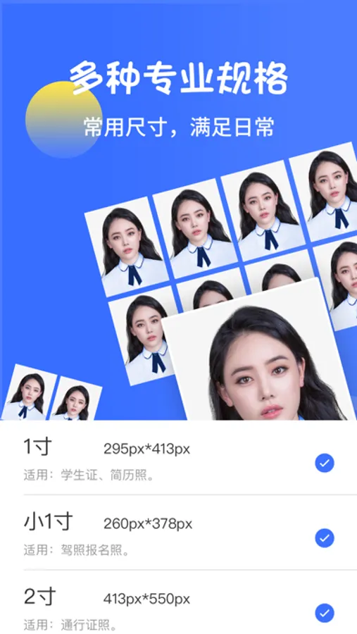 这是一款功能强大的智能证件照制作,有了它随时随地制作自己的最美证件照,再也不用担心工作照或者签证照片不好看啦!让你拥有完美证件照!
