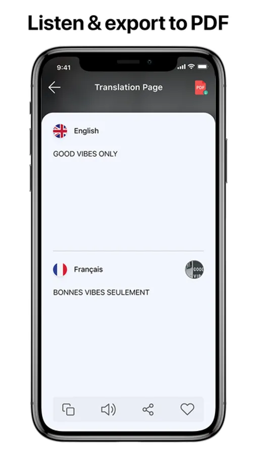 Photo Translator app is simple and functional. It can accurately recognize and translate 100+ languages, support auto text to speech and export to PDF.