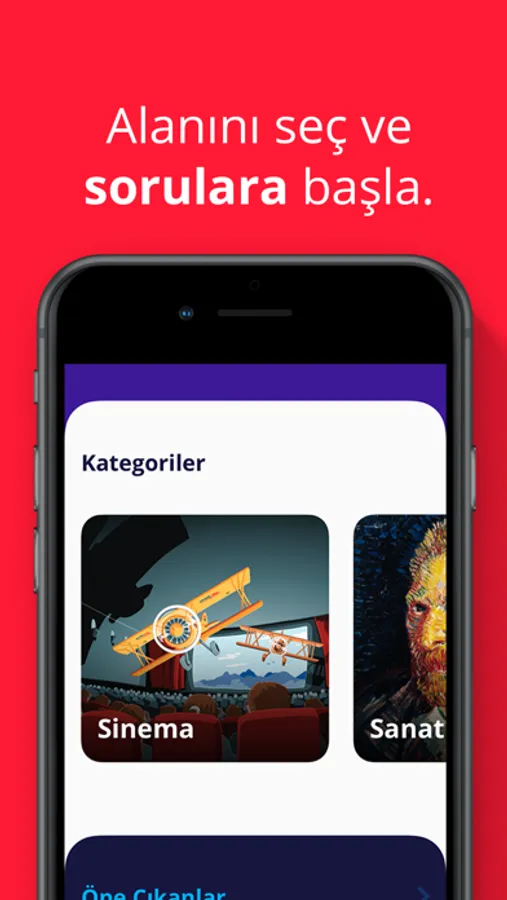 Kültür, sanat, tarih, edebiyat, sinema, müzik, felsefe gibi konu başlıkları ve herkese uygun kategorilerle kendini test edebilmeni, öğrendiğin yeni bilgilerle kendini geliştirmeni sağlıyor.