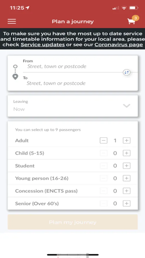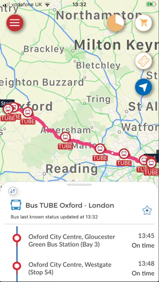 The new interactive map shows coaches in service and stops along the route– simply tap on a coach or stop to find your journey information.