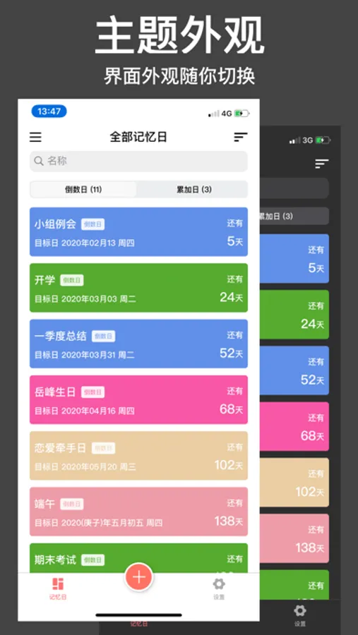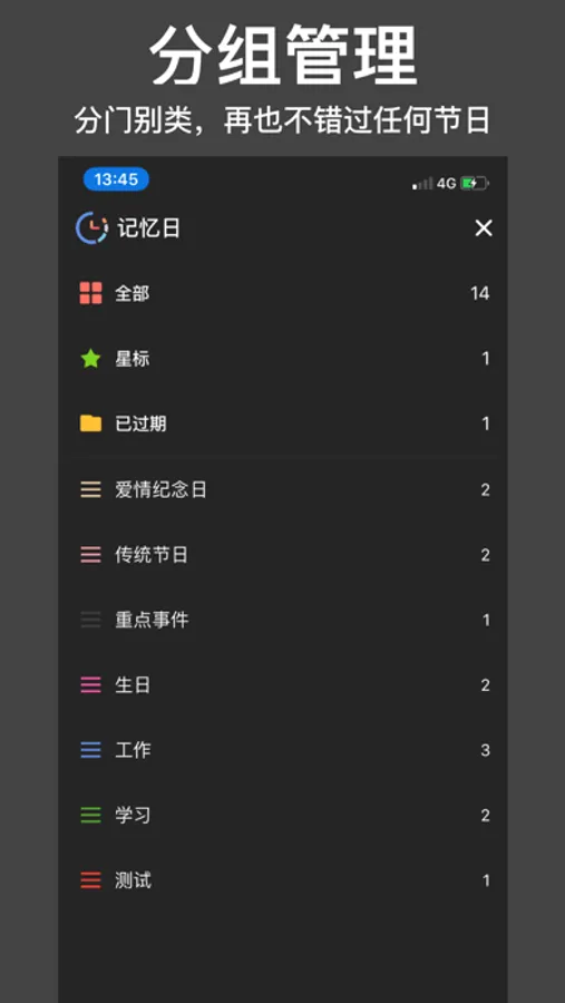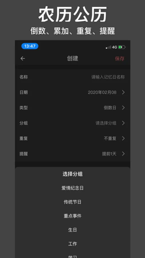 1. 新建记忆日,支持分组管理,同事支持重复,支持目标日前提前