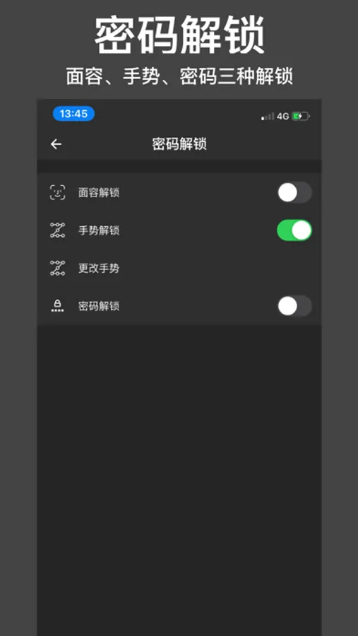 9. 密码解锁, 支持面容,指纹,图形锁,密码解锁
