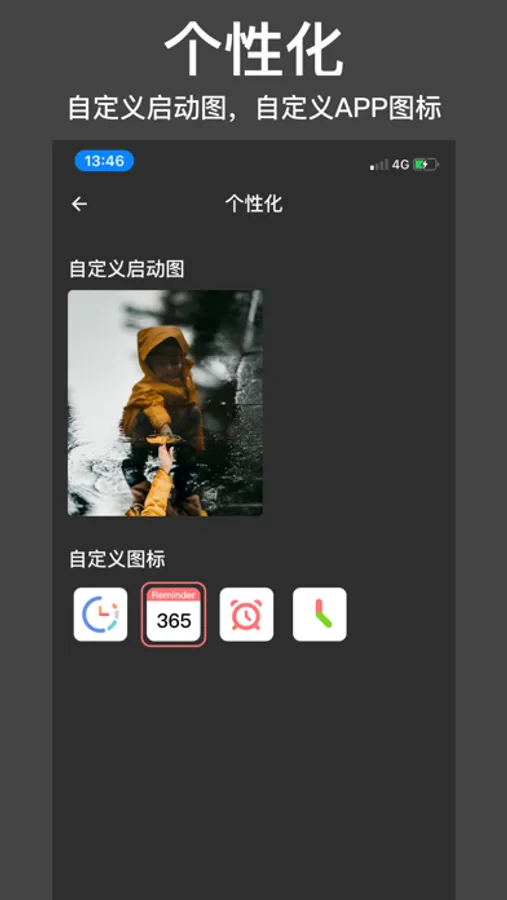 3. 日期支持自定义背景,相册,相机,系统内置三种可选