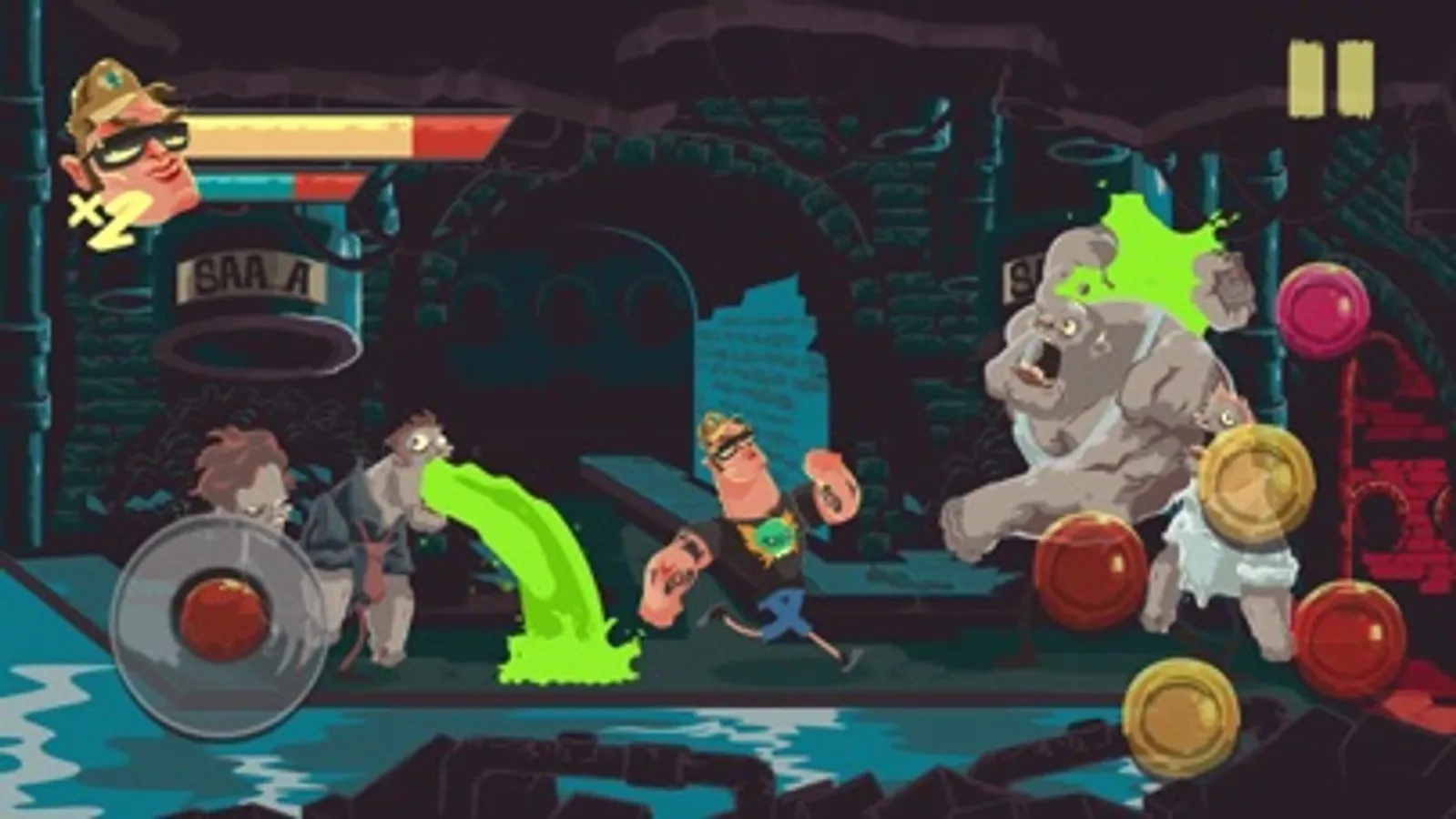 It’s a side-scrolling 2D ,platform, beat ém up in the style of Double Dragon and Golden Axe, and with a smidgen of Street Fighter and a sprinkle or two of creatine, and some grey-legal-area performance enhancing chemicals imported from Eastern Europe.