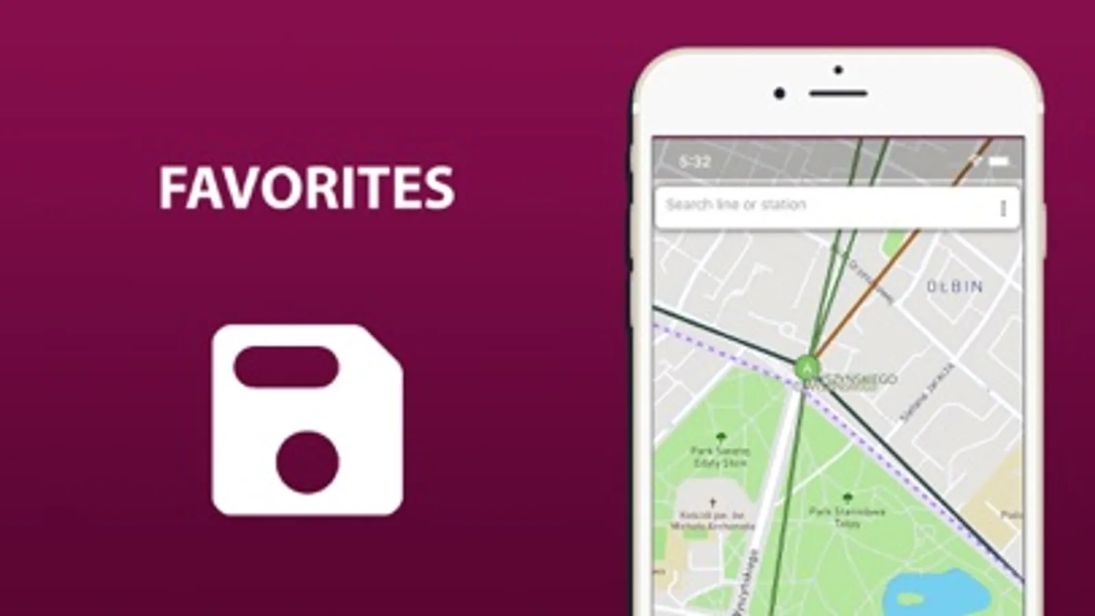 Search by station name or route number, saving chosen routes and geo-positioning are available in the basic version.