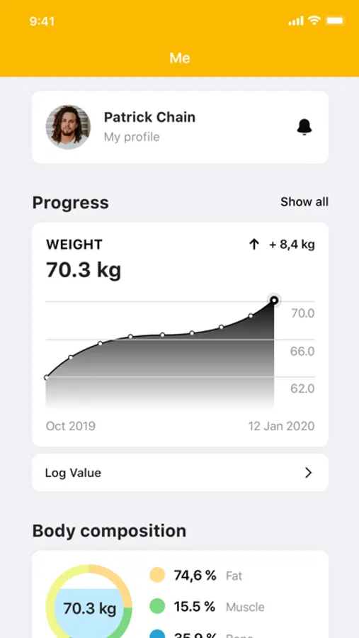 Sie können diese App mit dem Apple Health App synchronisieren. Wenn Sie diese Übertragung aktivieren, wird jedes Training aus der Health App automatisch zu Ihrem Aktivitätskalender hinzugefügt.
