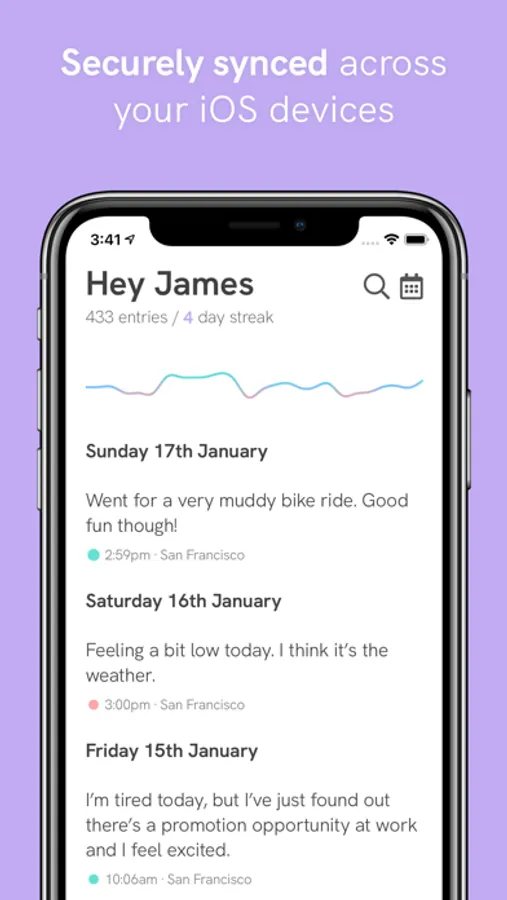 - Never miss an entry: build the habit of daily journaling with reminders and streaks to incentivise you to keep up your practice.