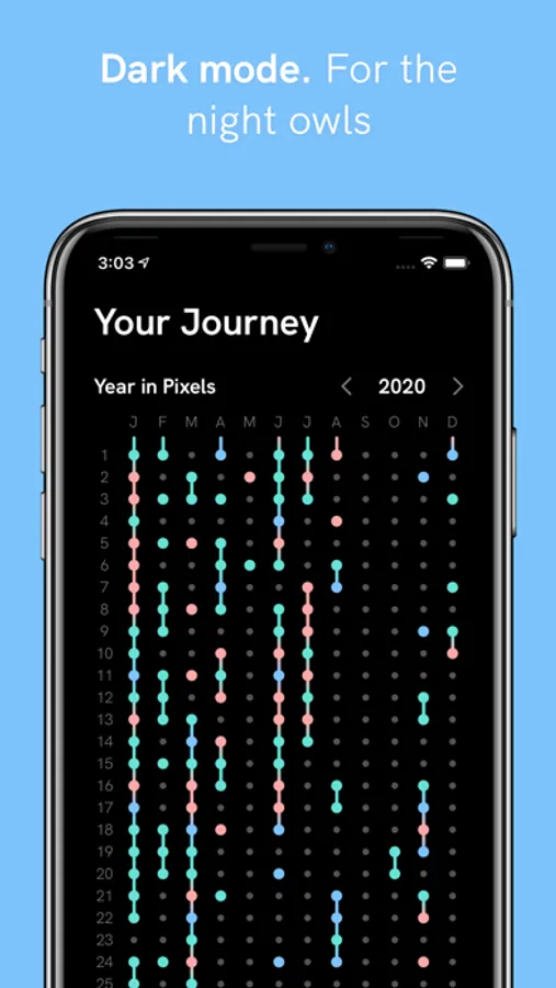 - See in the dark with Dark Mode, perfect for late night journaling.