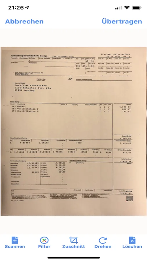 Highlights: Auslesen des QR-Codes, automatische Aufbereitung gescannter Dokumente inklusive Ausrichtungskorrektur sowie gesicherte Übertragung der Dokumente.