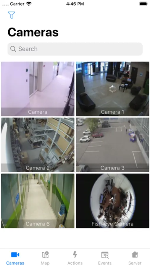• Filter visible cameras by groups and layouts created at server.