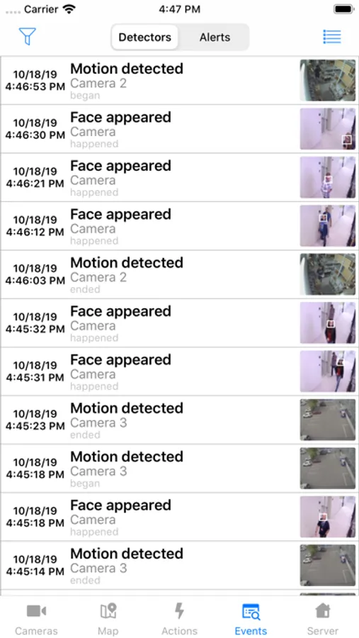 • Viewing the list of events or alerts.