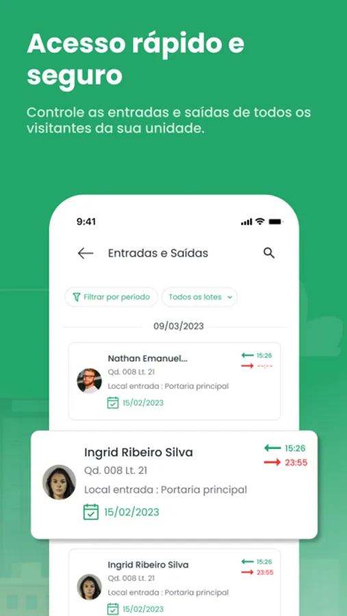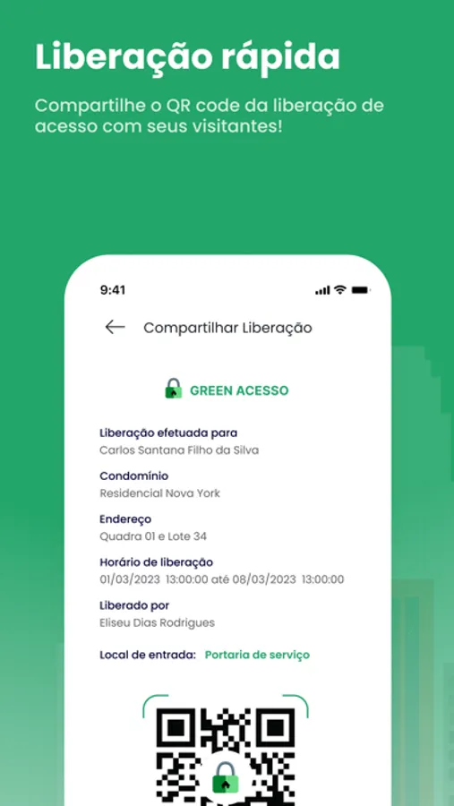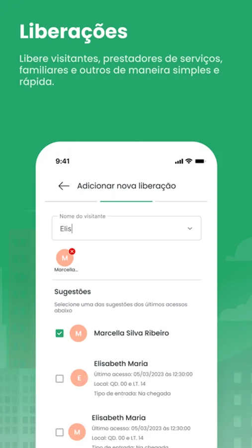 - Libere visitantes, prestadores de serviços, familiares e outros de maneira simples e rápida;