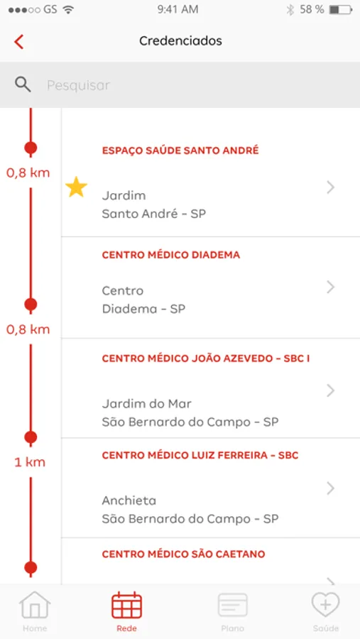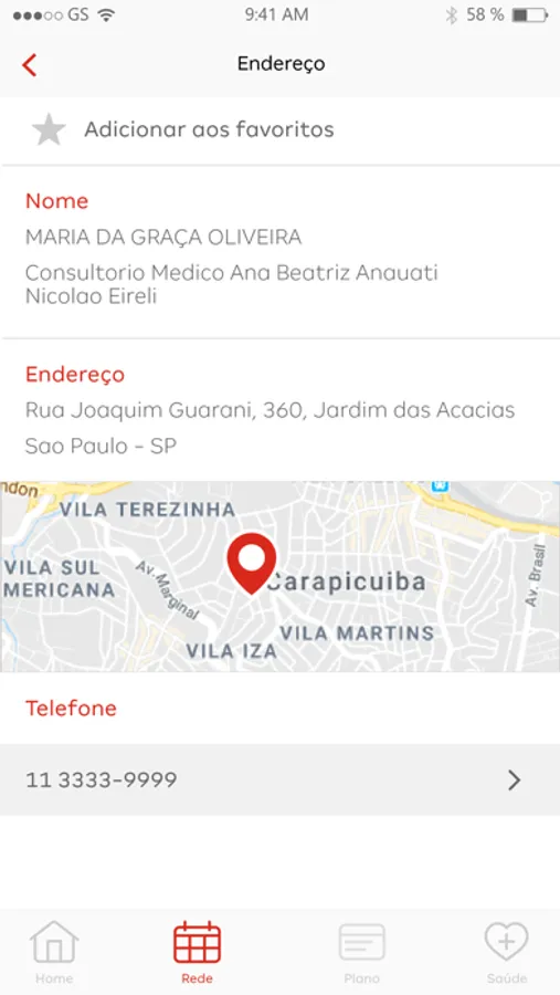 O aplicativo permite que você realize buscas por médicos, clínicas, hospitais e serviços de diagnóstico da rede credenciada do seu plano, encontrando-os no mapa e podendo até traçar a rota até o destino.