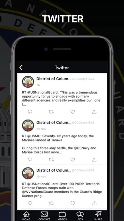 Today’s D.C. National Guard remains strong with more than 2,700 Soldiers and Airmen available to execute its missions. D.C. National Guard Soldiers and Airmen resides within the District of Columbia, Maryland and Virginia, and are proud to be from the communities in which we protect and serve. Staying in touch and up to date with the D.C. National Guard is easier and more enjoyable than ever before. Everything you want to know about the D.C. guard is at your fingertips.