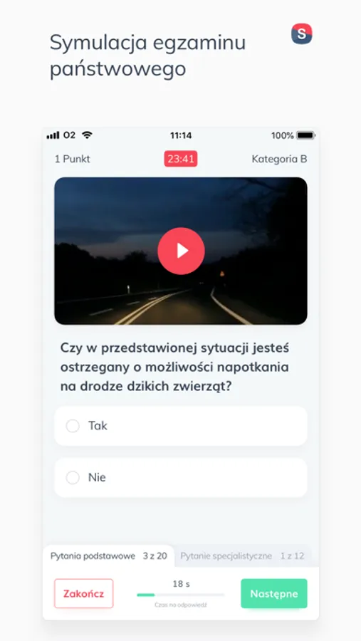 Exam simulation in our application runs exactly the same way as the official state exam. This applies to both the rules, duration and selection of questions. With us you are sure that nothing will surprise you.