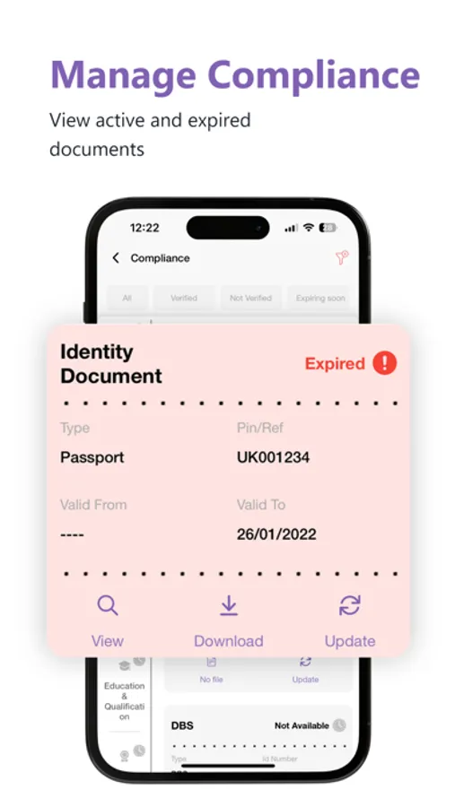 • Manage Compliance Documents: To maintain your work eligibility, keep your compliance documents up to date. The app tracks the status of your documents and sends reminders when updates are needed.