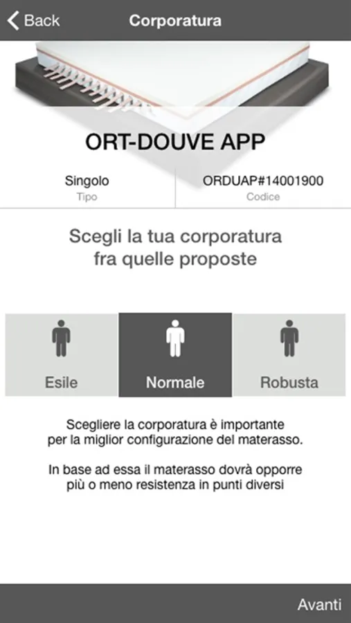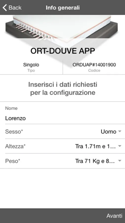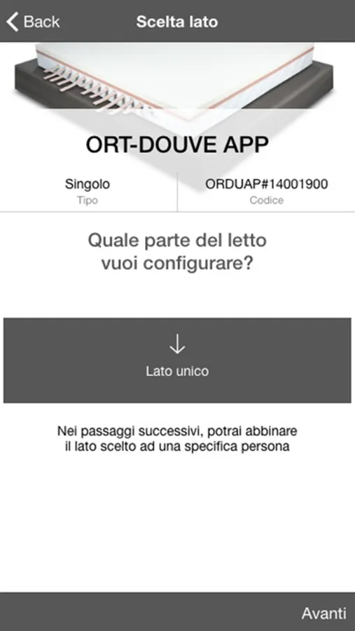 La APP è in grado di configurare solo i materassi ORT DOUVE