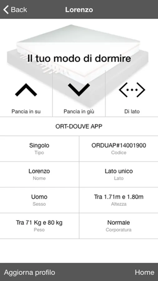 Ti basterà leggere con la APP ORT DOUVE il bar code che trovi sul lato del materasso per poter iniziare la configurazione del tuo riposo.