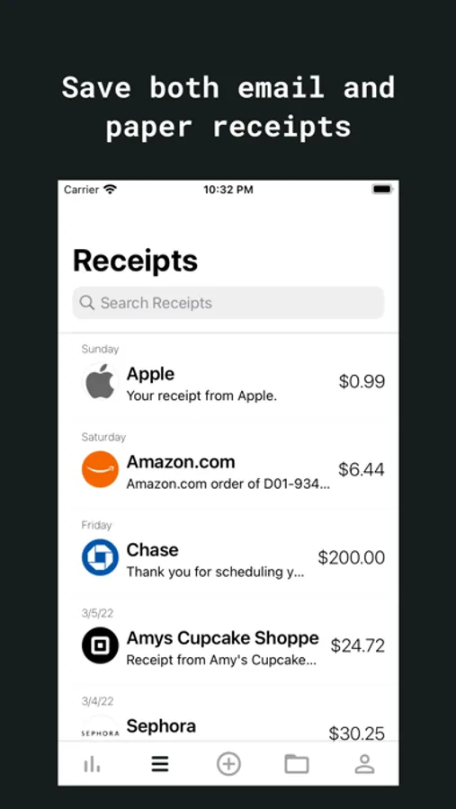 QuickReceipts is the only receipt tracking app that allows you to seamlessly scan your paper receipts and automatically import email receipts directly from your inbox. This app saves you valuable time by saving all of your receipts in one place.