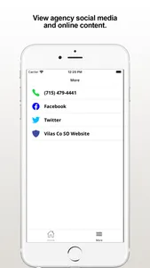 The VilasCo Sheriff app provides citizens the ability to submit anonymous tips to the Vilas County, WI Sheriff's Office. The app also displays the organization web and social media content.