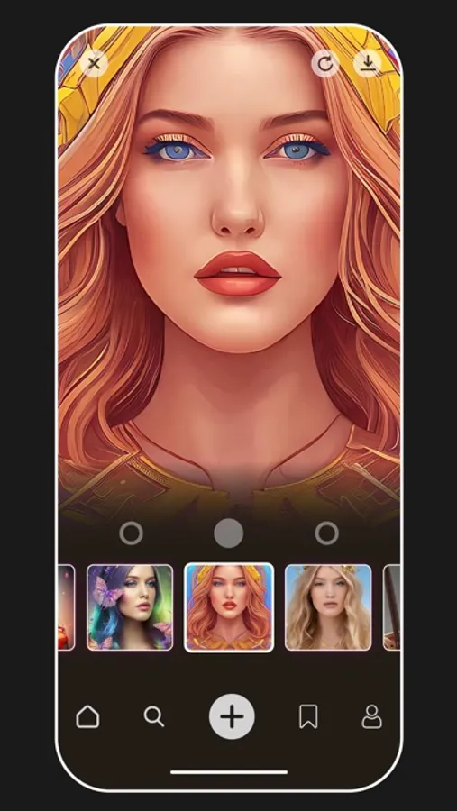 After installing the app, all you need is uploading 15 – 30 selfies of yourself. Those images are required for the advanced AI face technology to operate. Photic Photo Editor will only then be able to generate your AI Photos.