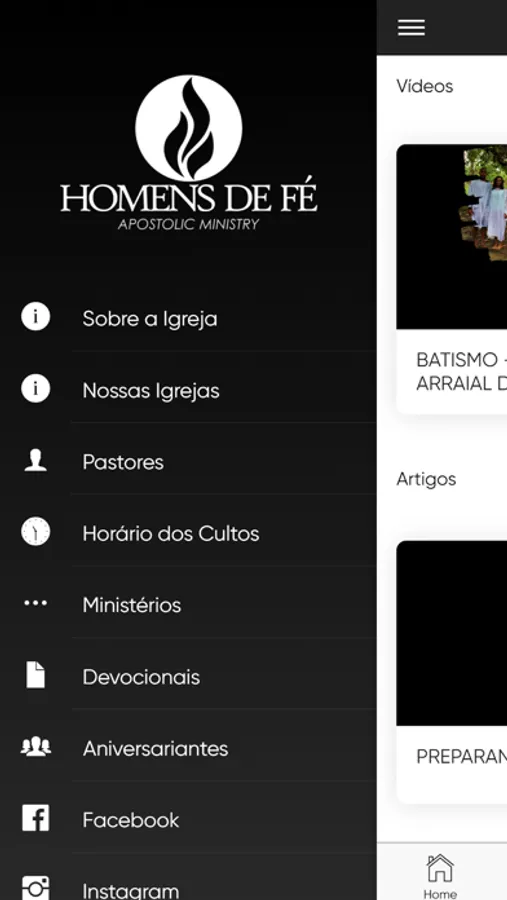 Aplicativo Oficial da Homens da Fé - Apostolic Ministry com as seguintes funcionalidades: