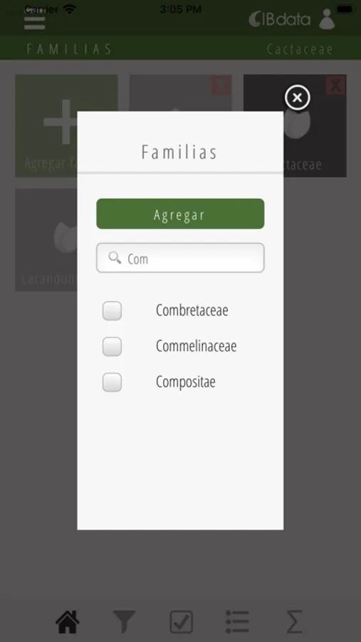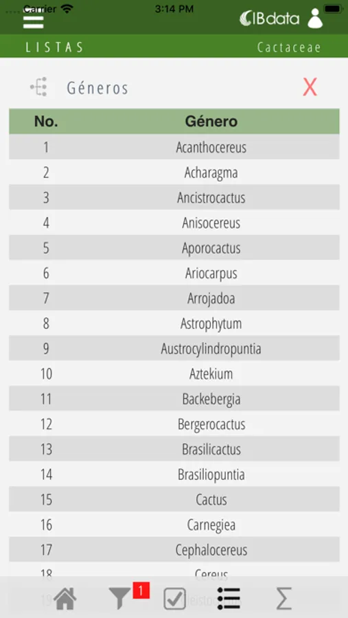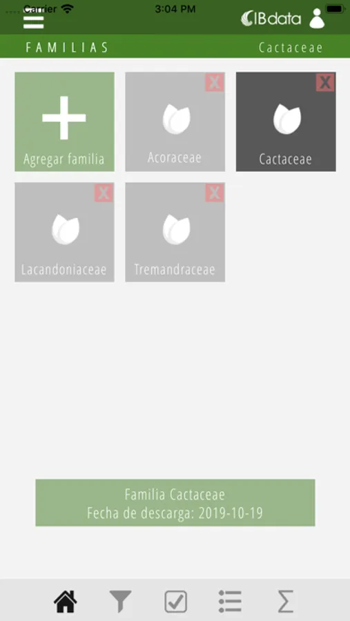 2. Permite descargar desde la base de datos del MEXU todos los registros de plantas por familia para poder trabajar Offline.