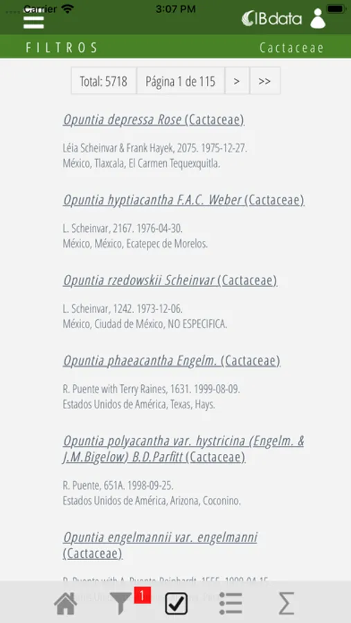 IBdata es una aplicación que permite visualizar los registros de la Colección del Herbario Nacional de México (MEXU) resguardadas por el Instituto de Biología de la Universidad Nacional Autónoma de México (UNAM). Las funcionalidades de IBdata son: