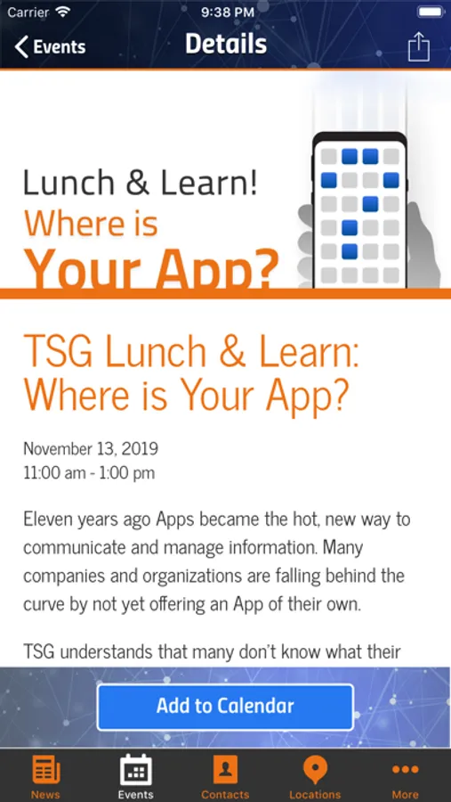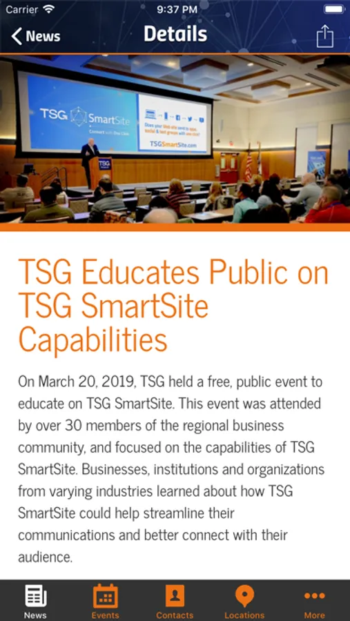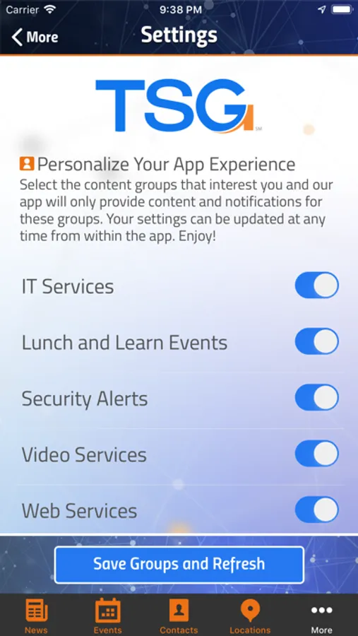 TSG is a technology and creative services provider headquartered in Wheeling, WV. Download the free TSG app to gain access to real-time alerts, news, upcoming events, a complete TSG contact directory, location information and more.