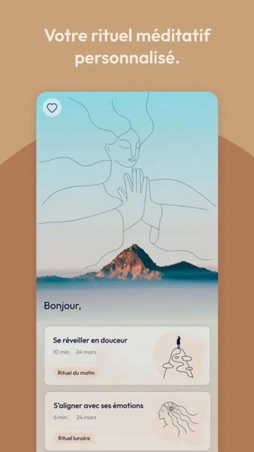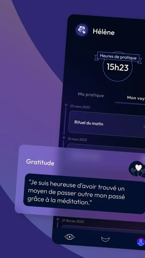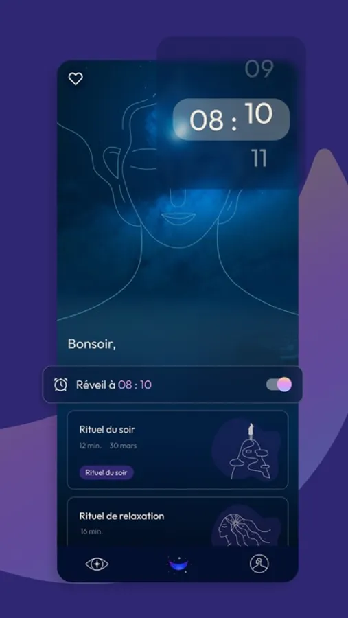Chaque jour, prenez rendez-vous avec vous-même pour expérimenter vos pratiques préférées : méditation, yoga, journaling assisté par intelligence artificielle, sonothérapie, oracle quotidien personnalisé...