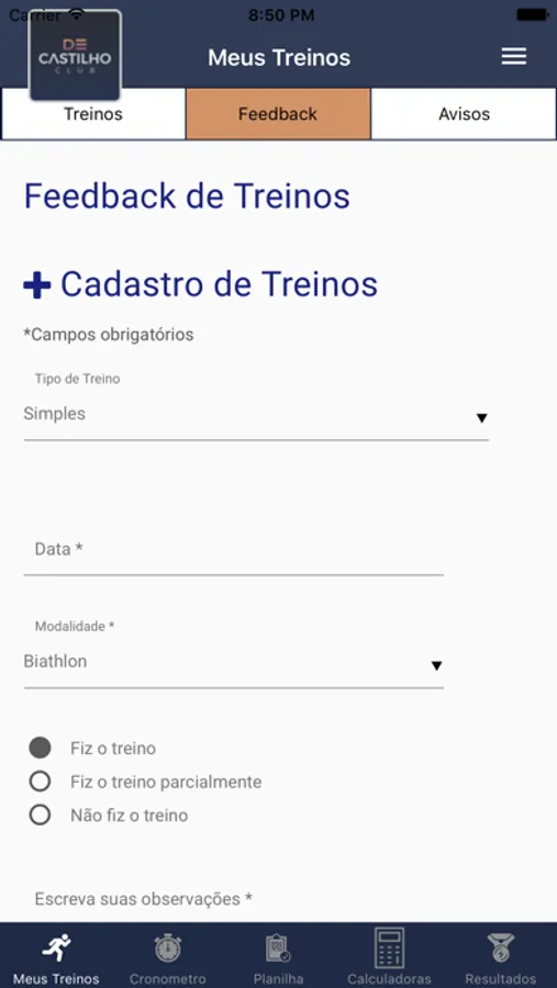 Somos o Clube de treinamento esportivo, estilo de vida e promoção da saúde da Empresa De Castilho Sports. Assessoramos pessoas físicas e empresas em busca de performance em consonância com seus objetivos, de forma segura e dinâmica, sempre com a orientação de profissionais especializados.